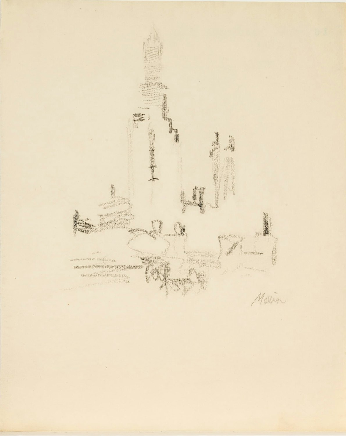 John Marin, Woolworth Building, Manhattan, circa 1921, graphite on paper, 10 × 8 in. (25.4 × 20.32 cm.), Arkansas Arts Center Foundation Collection: Gift of Norma B. Marin, New York, New York. 2013.018.287.