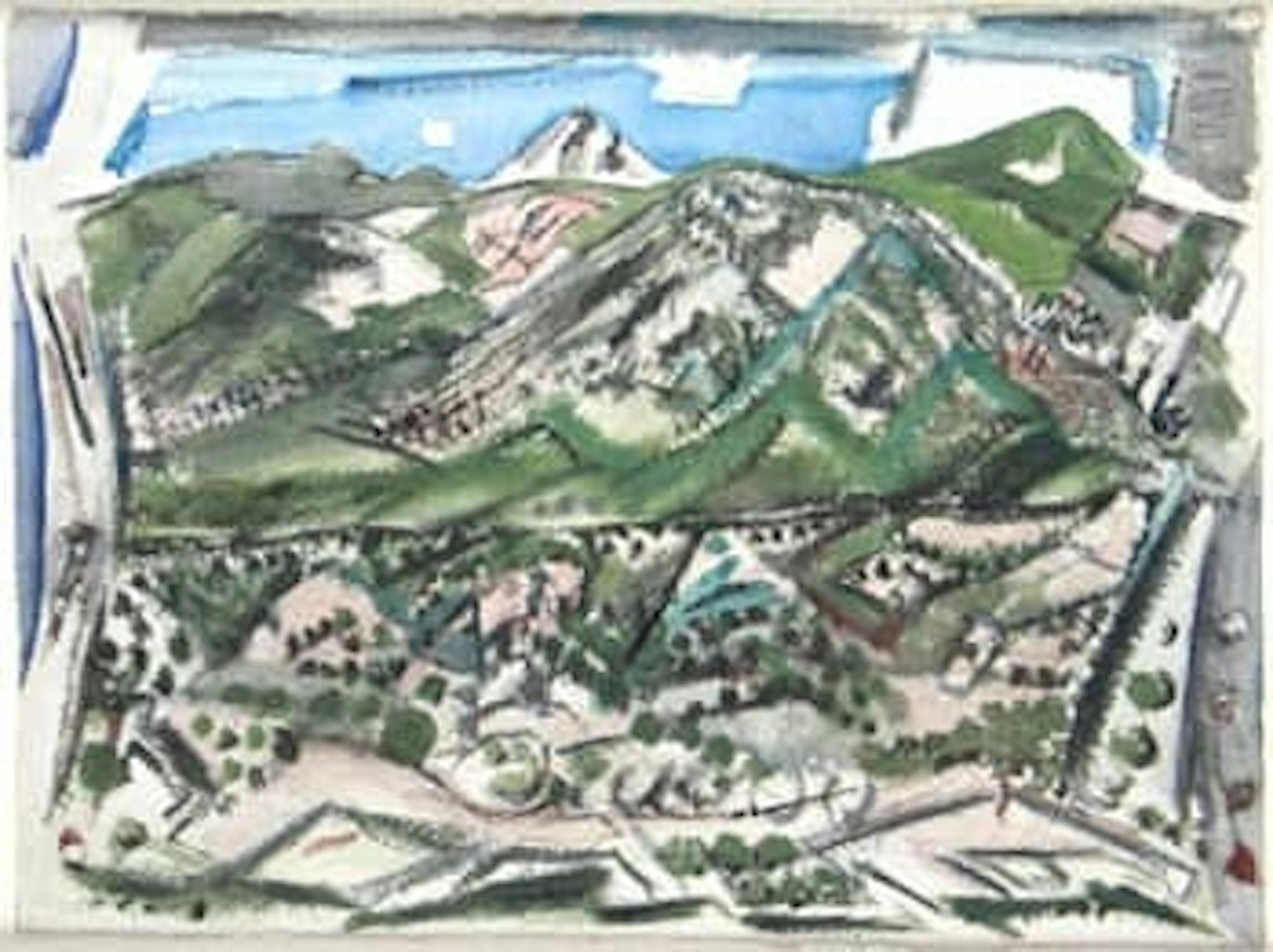 John Marin, Mountain Patterns, New Mexico, 1930, Watercolor on paper, 15 ⅝ × 20 ⅞ inches, courtesy of Meredith Ward Fine Arts, New York.
